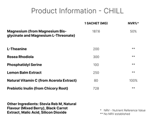 CHILL is a targeted powder blend of magnesium L-threonate and magnesium bisglycinate (glycinate) – formulated to ease anxiety and support a calmer, more balanced nervous system. With added lemon balm extract, phosphatidylserine, and prebiotic inulin from chicory root, our magnesium powder is designed to help you feel more grounded and less reactive to everyday stress.